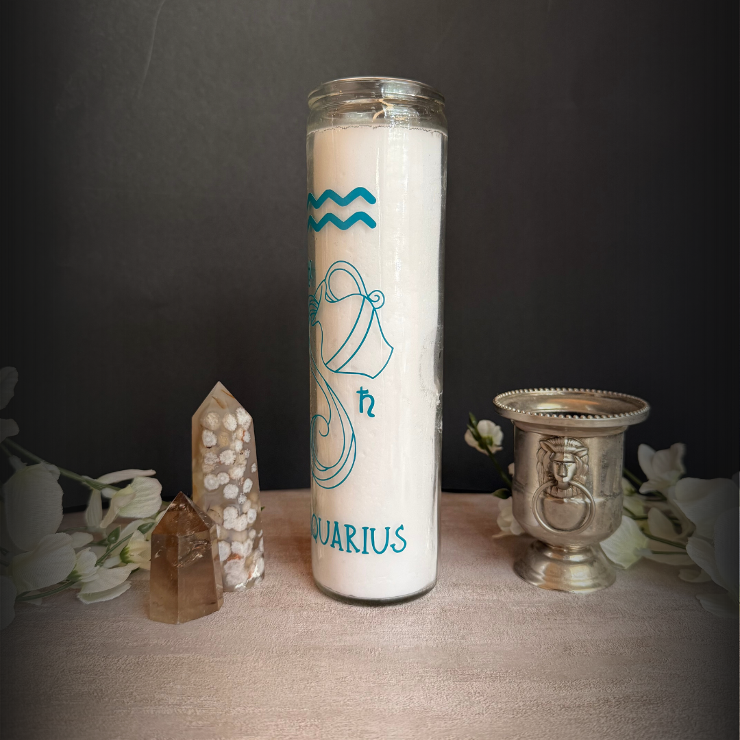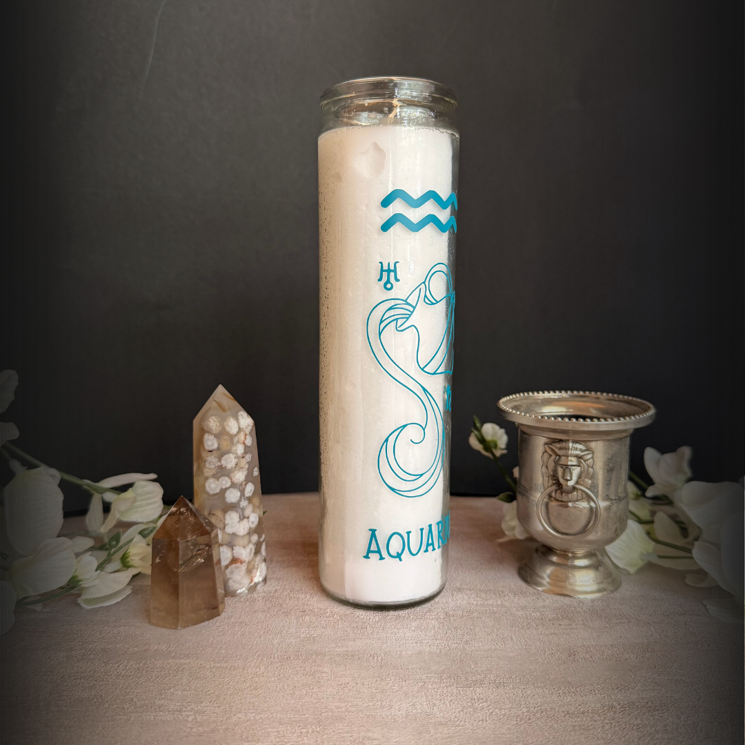 Aquarius Zodiac Ritual Candle – 8" Altar Candle Air Sign Water Bearer of Vision & Liberation