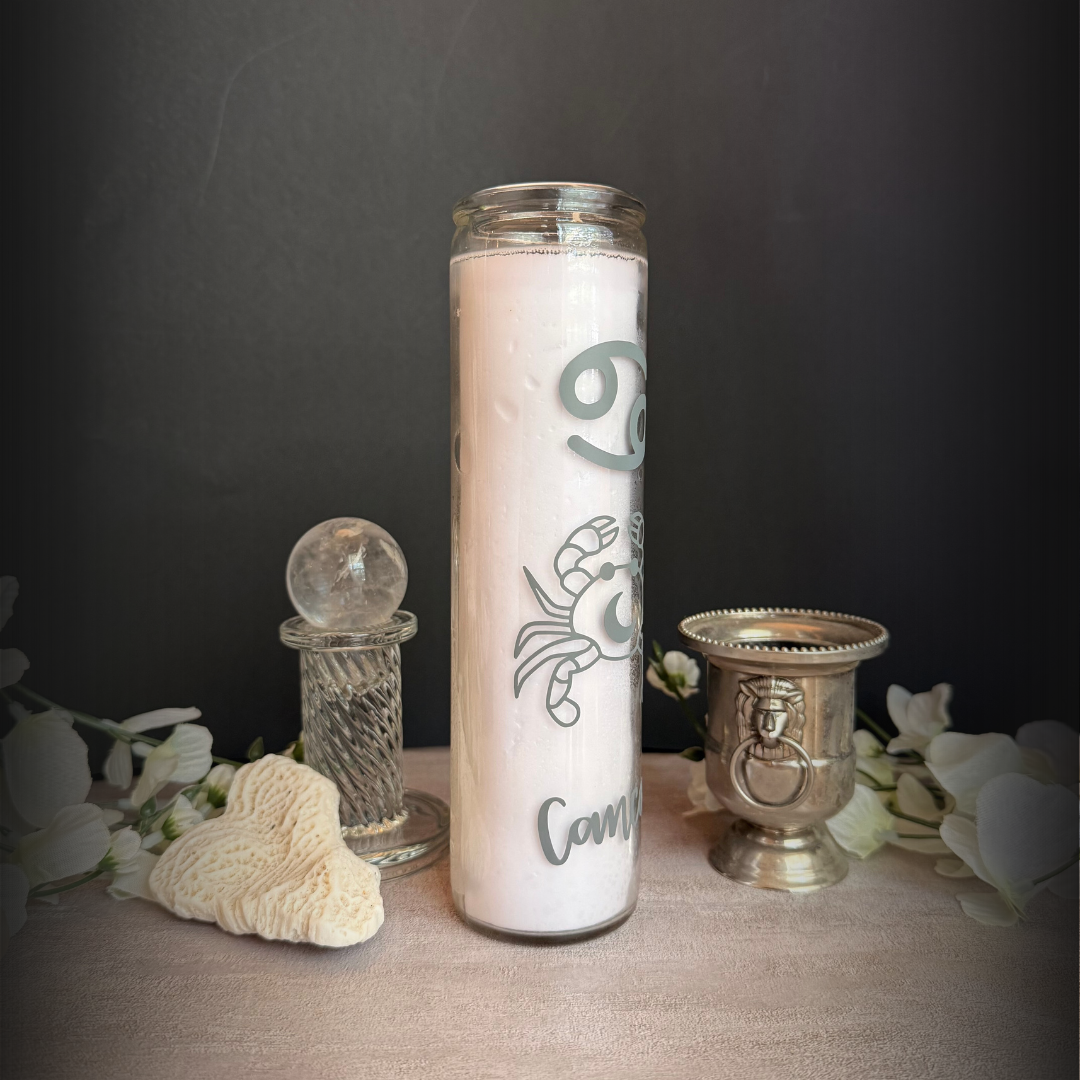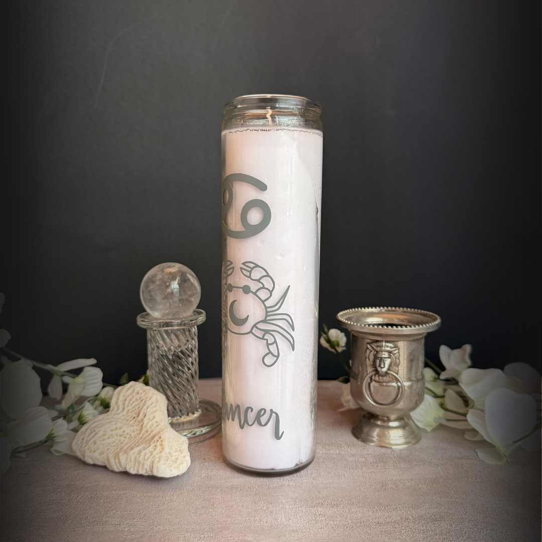 Cancer Zodiac Ritual Candle – 8" Astrology Witch Altar Candle, Moon-Energy, Emotional Healing