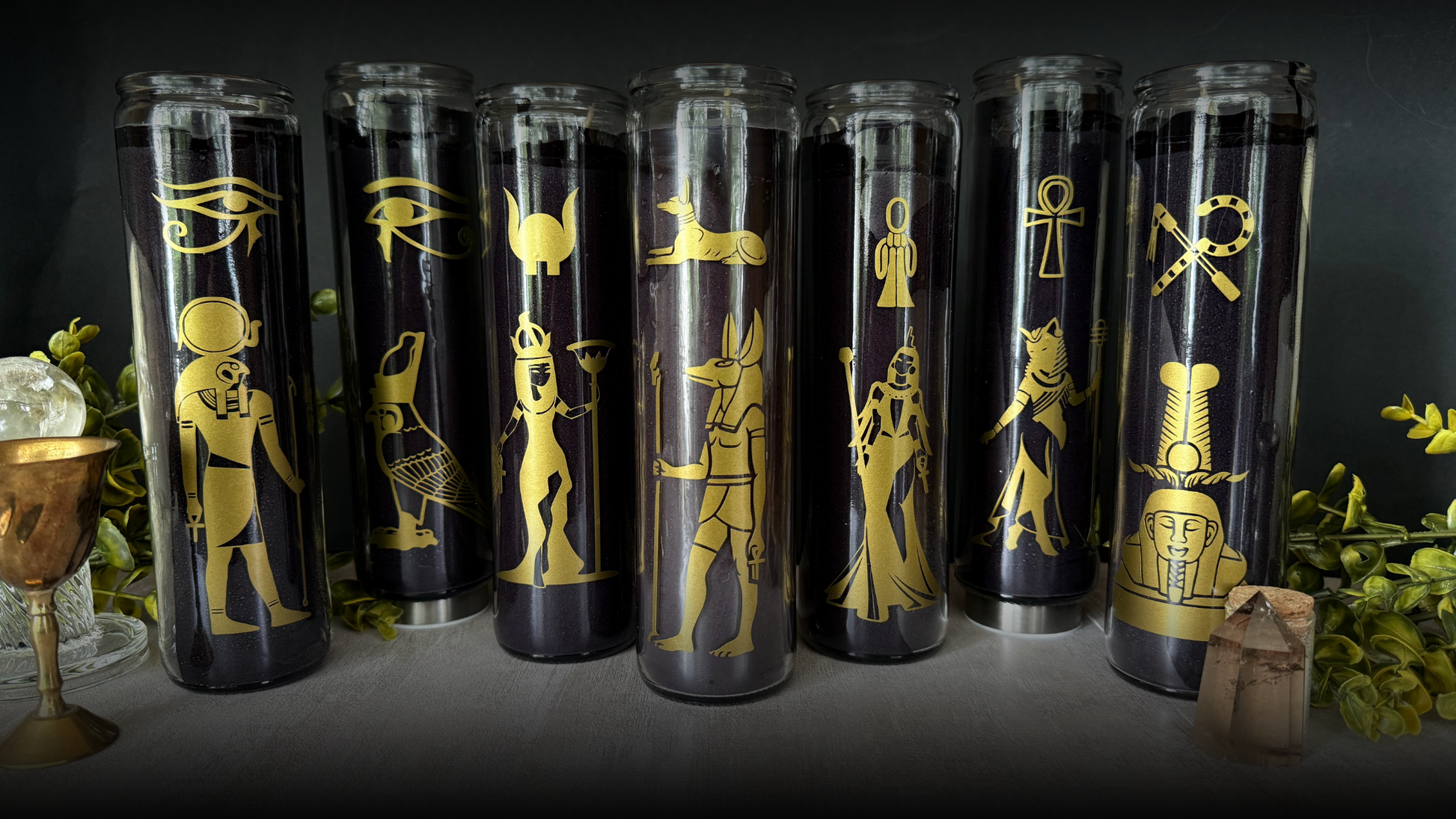 Egyptian Deity Candle Set - Ritual Candles Honoring 7 Goddesses & Gods