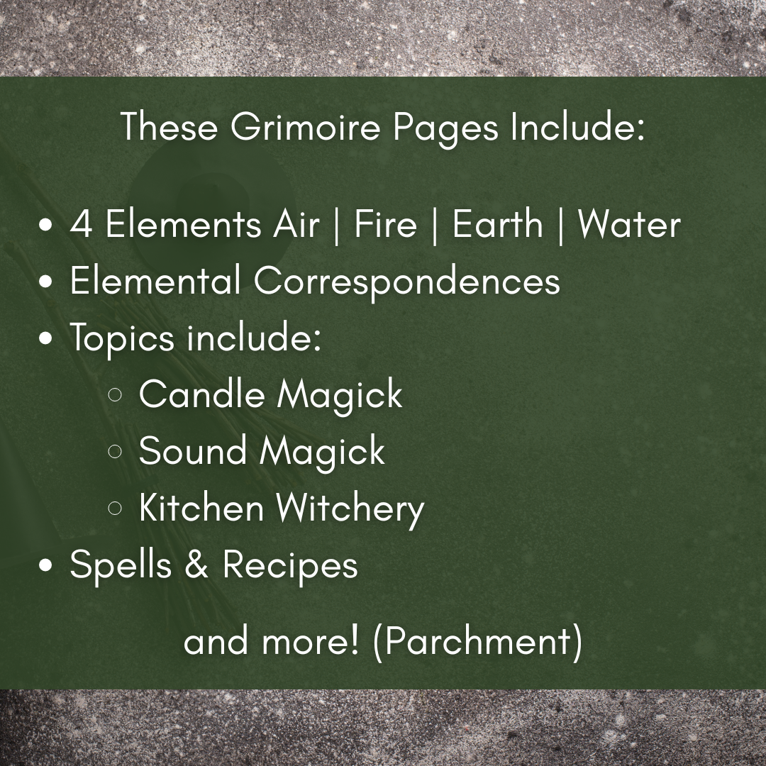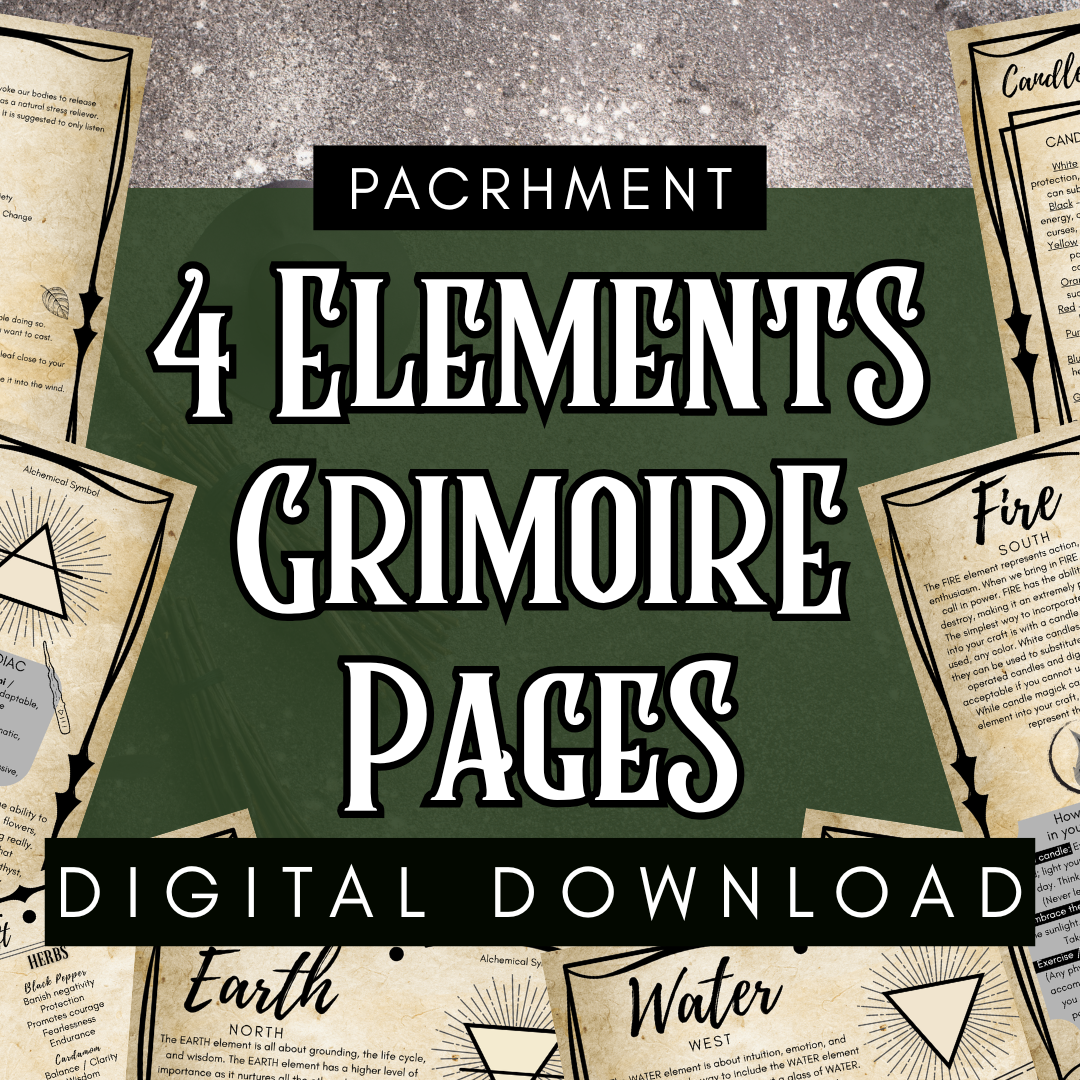 The Four Elements Grimoire Page – Printable Witchcraft Guide (Digital Download) - Parchment