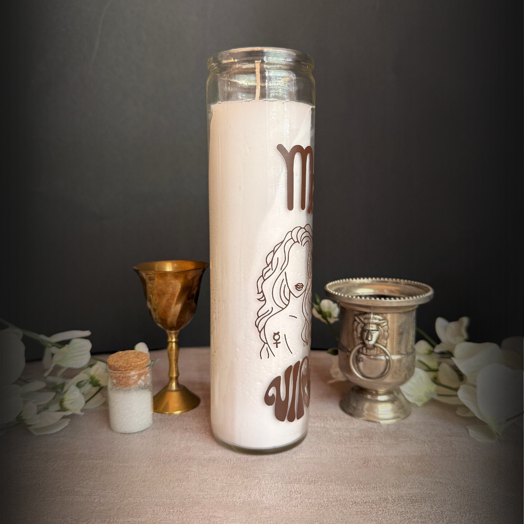 These candles are not toys and should be used with safety in mind. If you do not wish to light your candle, this candle can still be a great piece for your altar space to represent the Virgo Astrological sign!