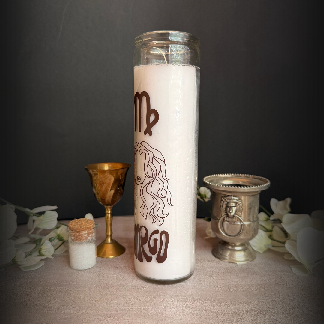 Virgo Zodiac Ritual Candle – 8″ Virgo Altar Candle Earth Sign Serenity & Practical Magic